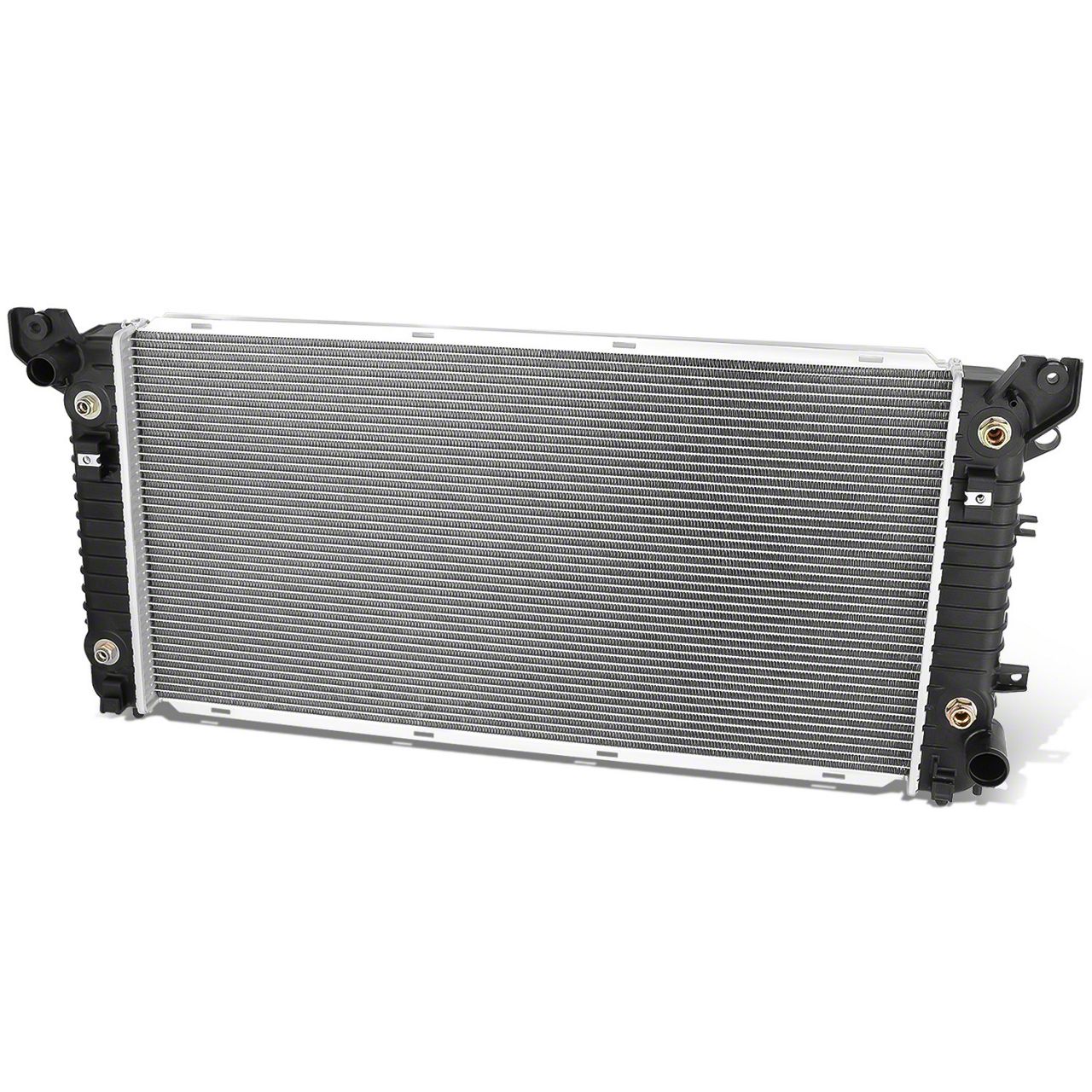 Construction and Appearance. Constructed with a lightweight aluminum core and durable plastic tanks, this radiator features a 34-inch wide core for excellent heat dissipation. The OE-style design guarantees compatibility with factory mounting points and connections for a seamless fit.