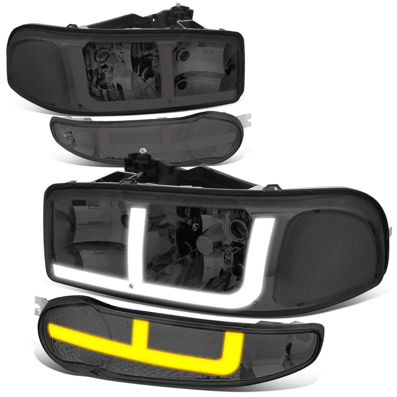 OE Style LED DRL Switchback Headlights with Clear Corners; Chrome Housing; Smoked Lens (01-06 Sierra 1500 C3, Denali)Find parts that fit my vehicle