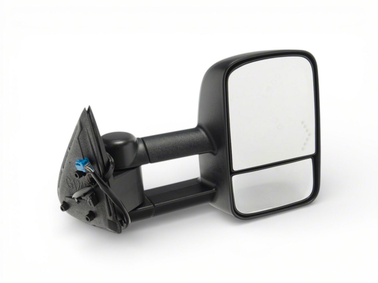 OEM Style Replacement Towing Mirror. Replace your 1500 Sierra's cracked or broken towing mirror with a brand new OEM style replacement. This manual folding/telescoping, dual lens, towing mirror is designed to replace the power-operated, heated passenger side mirror found on 2003-2006 GMC Sierra 1500 models equipped with mirror mounted turn signal lights, but without curb assist feature.