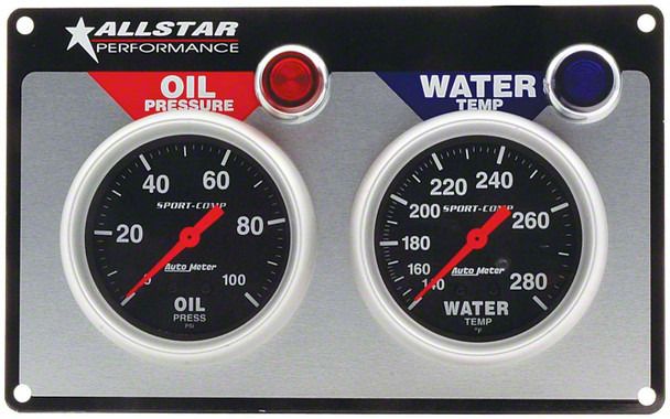 Allstar Performance Oil Pressure and Water Temperature Gauge Panel Kit; Sport-Comp Gauges (Universal; Some Adaptation May Be Required)