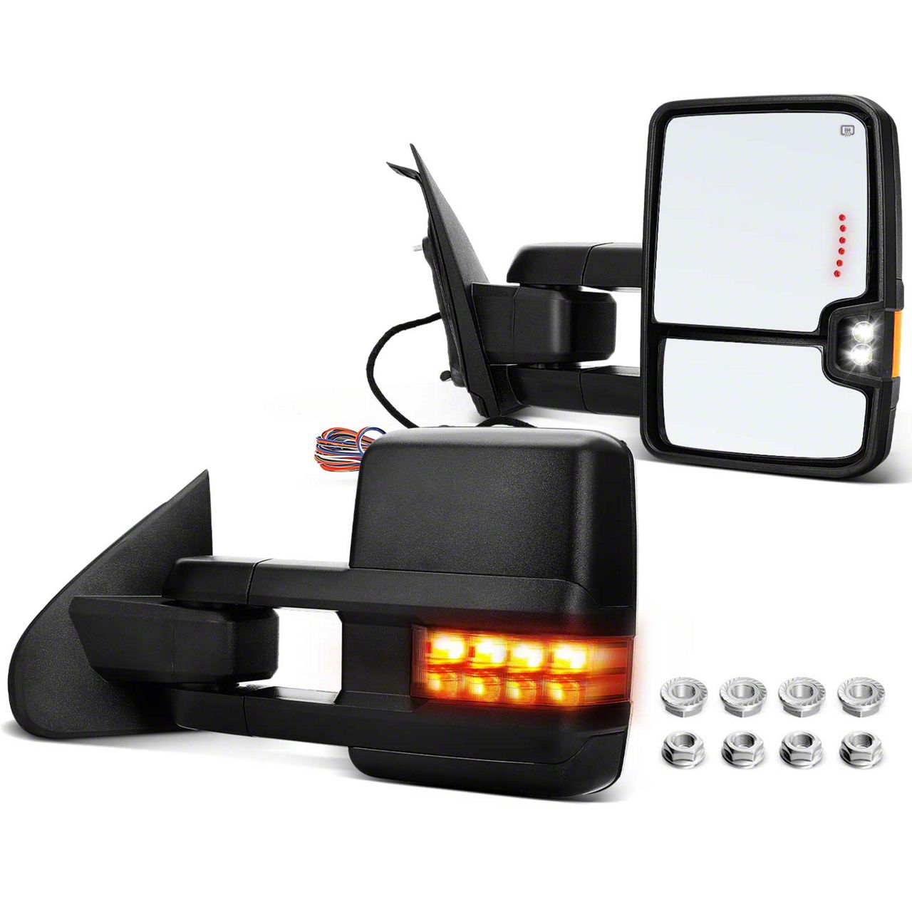 Powered Heated Manual Folding Tow Mirrors with Turn Signal; Textured Black (14-18 Sierra 1500)Find parts that fit my vehicle