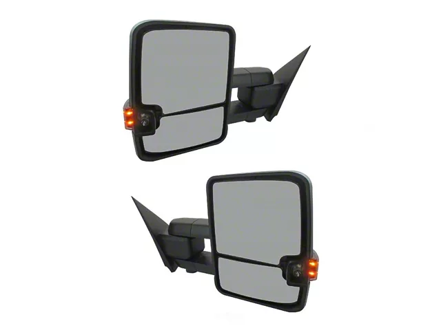 OEM Style Replacement Towing Mirrors. Replace your 1500 Sierra's cracked or broken towing mirrors with a brand new OEM style replacements. These manual telescoping, power folding and power-operated towing mirrors are designed to replace the heated mirrors found on 2014-2018 GMC Sierra 1500 models equipped with memory function, temperature sensor, puddle light, and mirror mounted turn signals.