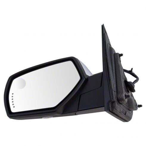 OEM Style Replacement Towing Mirror. Replace your 1500 Sierra's cracked or broken towing mirror with a brand new OEM style replacement. This power folding and power-operated towing mirror is designed to replace the heated driver side mirror found on 2014-2018 GMC Sierra 1500 models equipped with memory function, puddle light, and mirror mounted turn signals.
