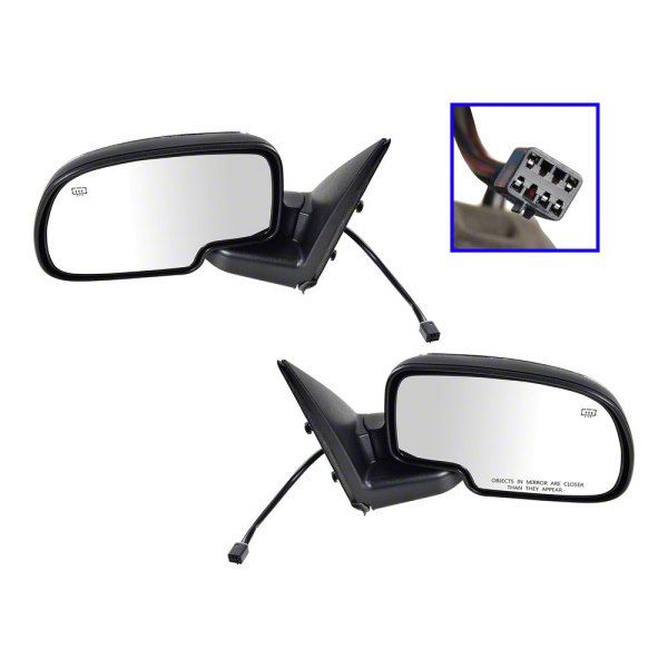 Description. Door Mirror Set; Power Heated Chrome 2 Piece Mirror Set