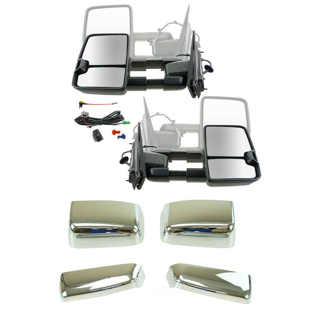 Application. These Powered Heated Power Folding Towing Mirrors with Black and Chrome Caps are designed to fit 2014-2018 GMC Sierra 1500 models. Includes Wiring Kit for models without Pre-wired Pins.