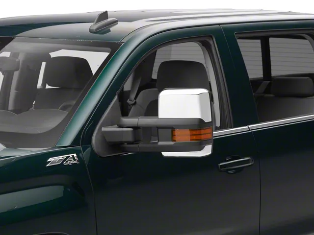Application. These Powered Heated Automatic Folding Towing Mirrors with Amber LED Turn Signals; Chrome are designed to fit 2014-2018 GMC Sierra 1500 models. Driver and passenger side included.