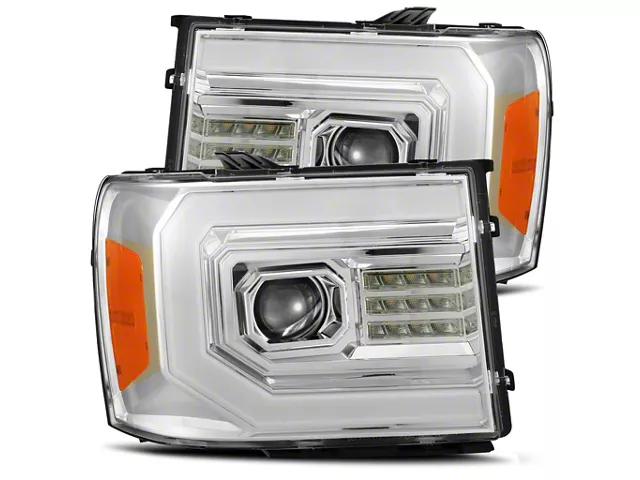 Sleek And Stylish Replacement Headlights. If you’re getting a little tired of your vehicle’s stock headlights, AlphaRex is here with its enhanced PRO-Series Projector Headlights. Coming with attractive chrome housing, these are plank-style projector headlights that improve brightness and road visibility. They emit a beam that illuminates more of the road than your factory headlights.