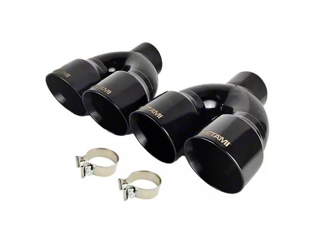 Construction and Appearance. Manufactured from high-end quality material, these exhaust tips are built for strength and corrosion resistance. Finished in a sleek gloss black coating, they feature pre-cut and precise measurements that ensure a seamless fit and durable, weather-resistant performance.