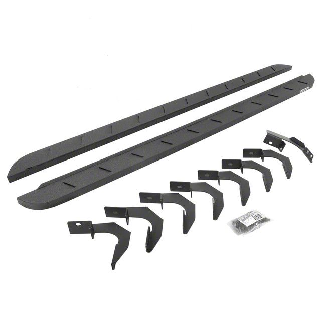 Construction and Appearance. Crafted from heavy-duty steel, the RB10 Slim Running Boards are finished with a durable, corrosion-resistant bedliner coating for superior grip and longevity. Their slim profile hugs the rocker panel for a clean fit while still offering solid protection against road debris and trail hazards.