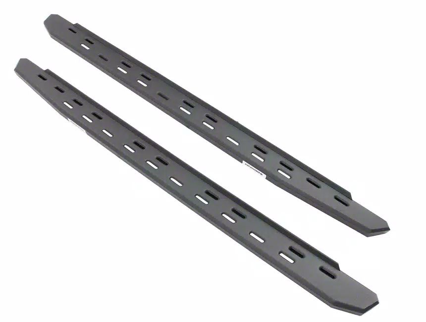 Enhanced Utility. The Go Rhino RB30 Slim Line Running Boards offer a sleek, aggressive look while improving ground clearance, which is a step up from the original RB30 design. The 5-inch-wide stepping surface ensures easy access to your Sierra 1500, preventing the accumulation of dirt, mud, and snow, ideal for keeping the boards clean and slip-free.