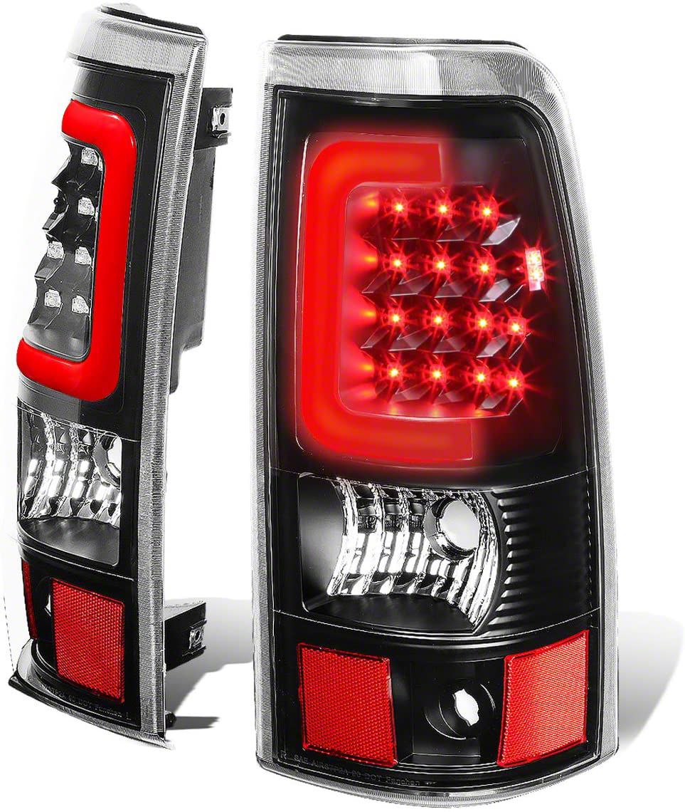 Application. The Dual Red C-Bar LED Tail Lights; Black; fits all 2003-2006 Sierra 1500 Fleetside.