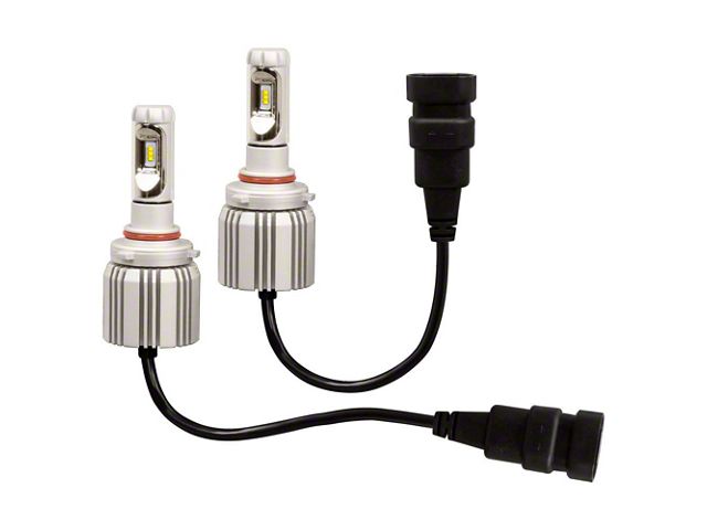 Description. New design for clean and easy installations. 6000 Lumens. 25 Watts per bulb. Voltage: 9-32V DC. Compact radial heatsink for better heat dissipation – less depth of space and easy installs. Voltage and current monitoring circuits are inside the compact radial heatsink housing and protected from the elements. 6500K color spectrum with 3000K (golden yellow) and 8000K (light blue tint) films. Rotatable bulb can adjust the beam pattern for the vehicle. IP67 Rated. Sold as a pair. Keep your original factory bulbs so that you can replace them for use on public roads. Keep the box that the new bulbs came in to store the bulbs and be sure to handle them with care when removing and re-installing