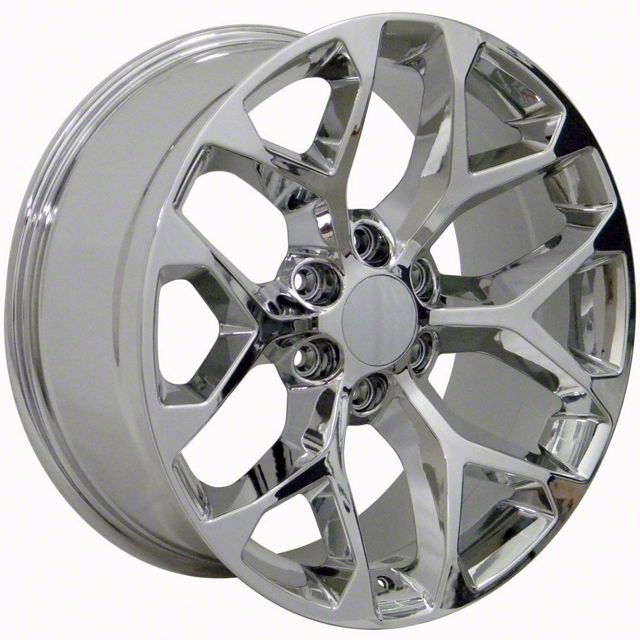 Polished, Mirrored Chrome With its Polished, Mirrored Chrome finish, the 20x9 Snowflake Style Chrome 6-Lug Wheel enhances the overall look of your vehicle, while ensuring longevity against wear and tear.