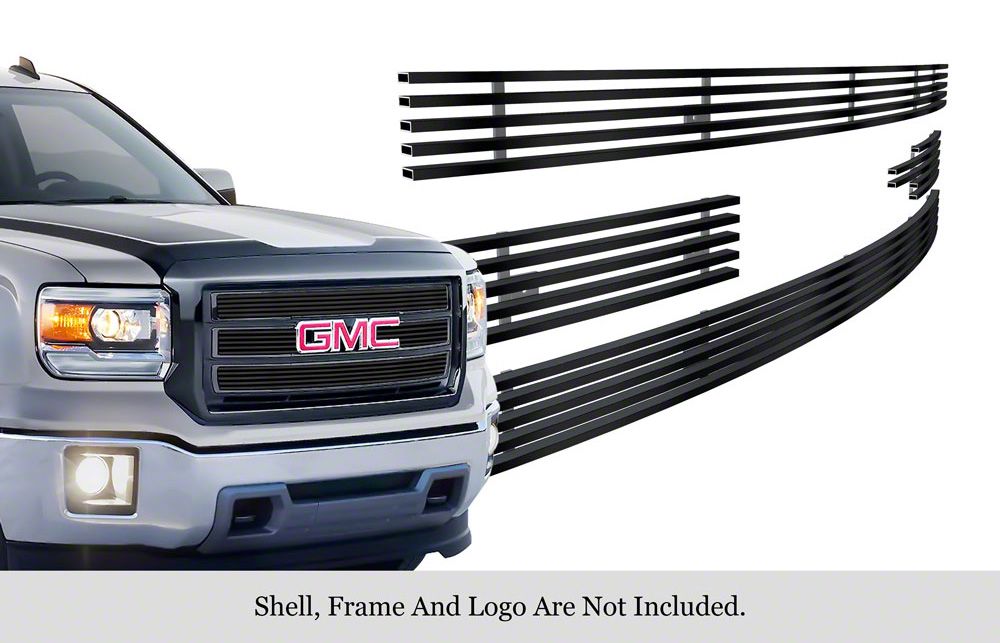 Application. The Stainless Steel Billet Upper Overlay Grille; Black fits 2014-2015 Sierra 1500 models without All-Terrain Package, excluding Denali.