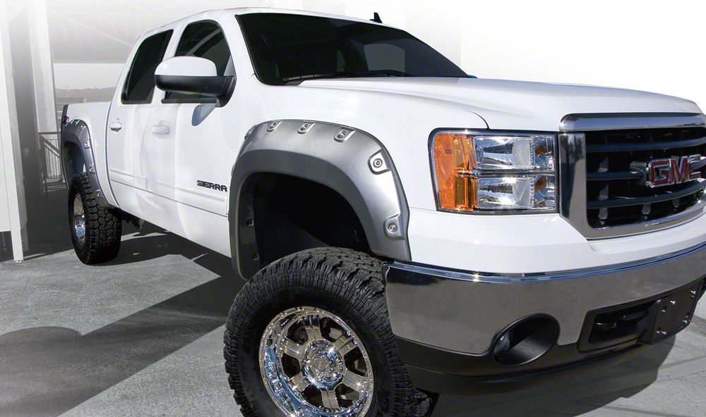 Application. These Super Pocket Style Fender Flares in Smooth Black fit 2007-2013 GMC Sierra 1500s with Short Boxes.