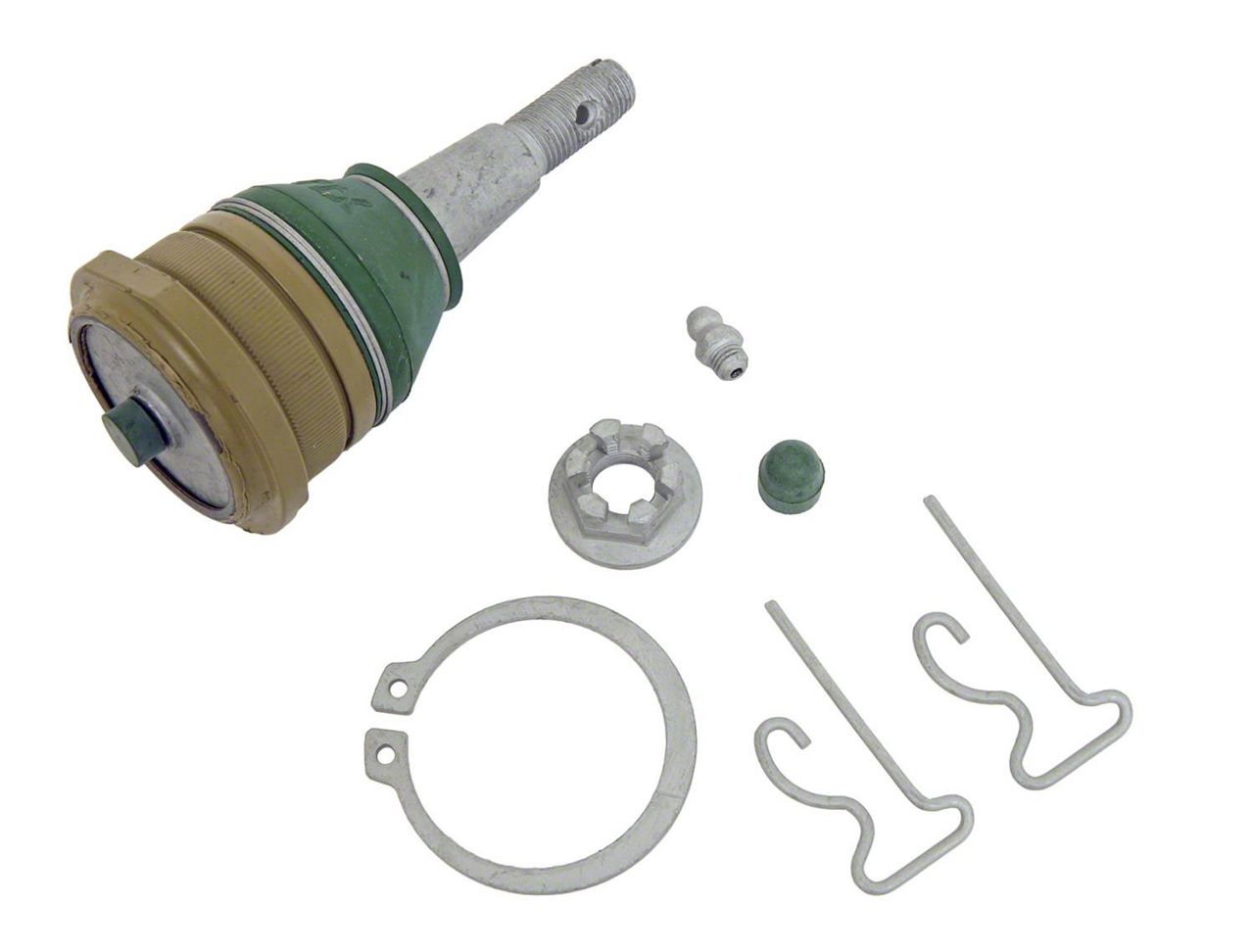 Heavy-Duty Construction. This front upper ball joint has sintered metal bearings for added endurance while the bulkier flange adds stiffness to the structure. This ball joint comes with dust boots, castle nut, and an easy-snap cotter pin with a pre-applied Nylok thread adhesive for best fastener holding. It’s also greaseable and comes with a grease fitting for worry-free maintenance. Additionally, the overall Repel-Tek Finish of this ball joint offers maximum corrosion resistance.