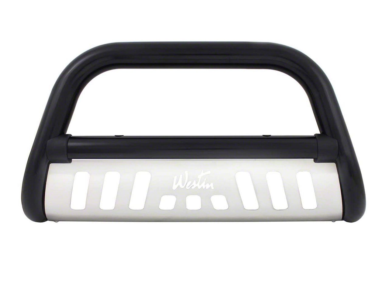 Heavy-Duty Quality. This Ultimate Bull Bar offers the ultimate in toughness and performance. It is built from high-quality mild steel for maximum durability and is fitted with molded weld caps to ensure a clean look. Additionally, a stainless steel skid plate is added to this bull bar for extra protection to the lower front section of the vehicle against large trail objects. This bull bar also features a black powder-coated finish that is resistant to fading, chipping, and corrosion and adds a head-turning appeal to your truck.