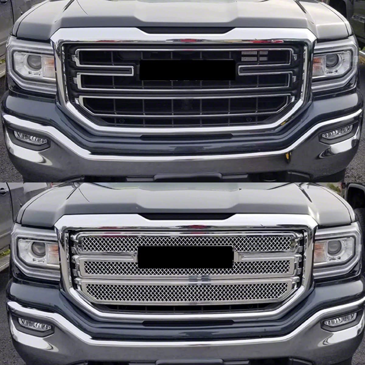 Application. This Upper Overlay Grille; Chrome Finish fits all 2016-2018 GMC Sierra 1500 Base and SLE models.
