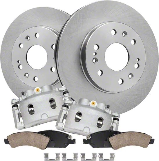 Comprehensive Brake System Upgrade. The Vented 6-Lug Brake Rotor, Pad, and Caliper Kit (Front) offer superior stopping power and reliability for your vehicle. Engineered to endure rigorous driving conditions, this kit ensures optimal braking performance, restoring your vehicle’s safety and responsiveness.