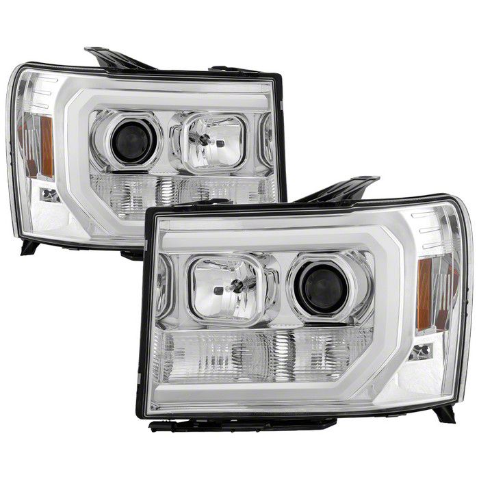 Application. These Version 2 Light Bar DRL Projector Headlights; Chrome are designed to fit 2007-2013 GMC Sierra 1500 models. Driver and passenger side lights are included. High Beam H1, Low Beam H1.