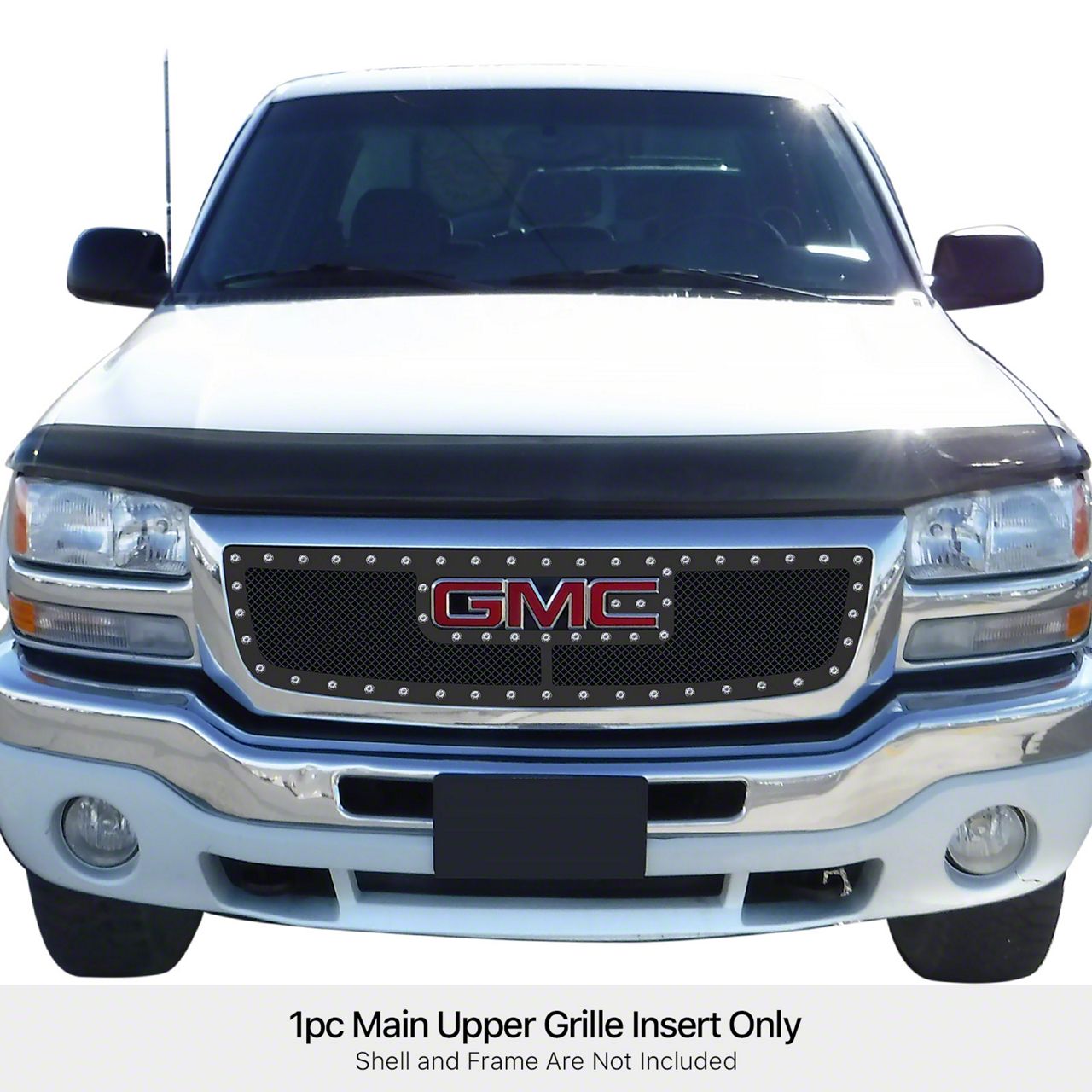 Wire Mesh Rivet Style Upper Overlay Grille with Logo Cutout; Black (03-06 Sierra 1500 Excluding Denali)Find parts that fit my vehicle