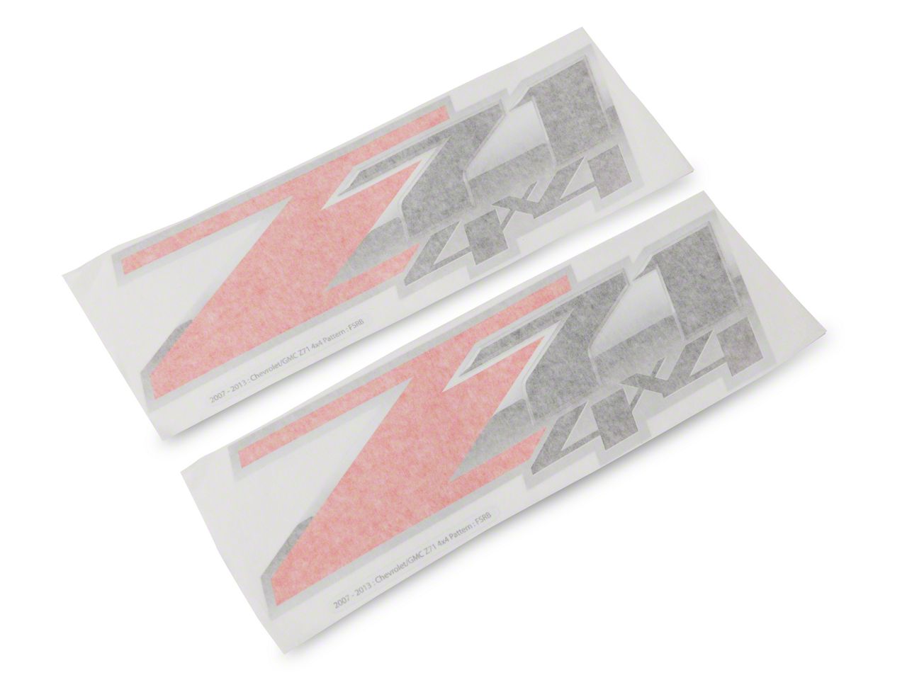 Unique Look. Adding this Red/Black/Gray Z71 4x4 Decal set will help your truck sport a more unique look. This kit’s decals bear the “Z71 4x4” emblem that comes in a nice red, black, and gray color combination. Also, each decal measures 12.50 x 4 inches, allowing you to attach it to most flat and smooth surfaces.