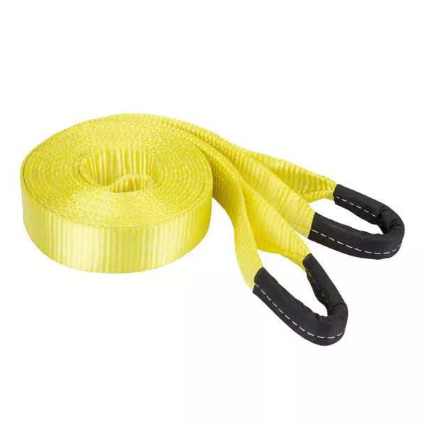 Construction and Appearance. Made with reinforced loops at both ends, this tow strap ensures secure attachment points for enhanced safety and performance. The bright yellow color increases visibility, making it easy to locate and use in any condition. This tow strap meets or exceeds all DOT and CE safety standards, ensuring it performs reliably under pressure.