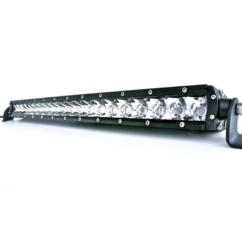 Bright Osram LED Lights. Made for a universal fit, this LED Light Bar comes in a matte black finish 6063 aluminum housing with clear high impact GE Lexan lenses. Built as a single row 30 inch model, this unit uses 20 Osram 5 watt LED lights at 500 watts outputting 12,160 raw lumens. This unit has both spot and flood combo beams.