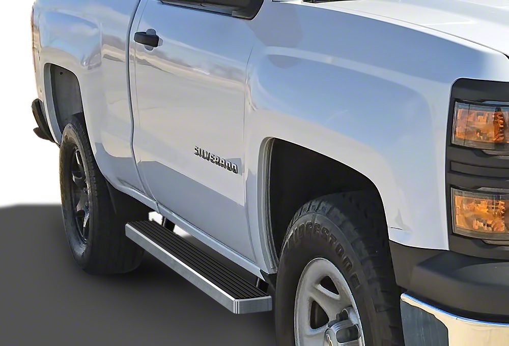 Style and Function. Upgrade the appearance of your GMC Sierra 2500 HD Regular Cab with a set of 4-Inch iStep Running Boards. These great looking iStep Running Boards furnish a convenient 4-Inch wide step for easy entry in and out of your 2500 Sierra while giving it a clean, modern appearance. As an added bonus, these Running Boards will help to protect your vehicle's body and paint from stones and road debris that get kicked up while driving.