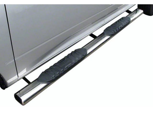 Construction and Appearance. Crafted from durable stainless steel tubing, these step bars feature a straight 5-inch oval design for a bold and modern look. The polished chrome finish provides excellent corrosion resistance and a mirror-like shine, while the matte black step pads ensure a secure, non-slip surface for safe entry and exit. This combination of finishes delivers both style and durability.