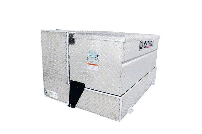 Heavy-Duty Combo Transfer Tank. The Specialty Series Combo Transfer Tank offers a substantial 111-gallon capacity, making it ideal for transporting fluids in your 2001-2026 Sierra 2500 HD w/ 8-Foot Long Box . This L-shaped tank is crafted from high-quality 0.125-inch Brite-Tread aluminum, paired with a 0.56-inch utility chest, offering durability, strength, and ample storage for your private-use applications.