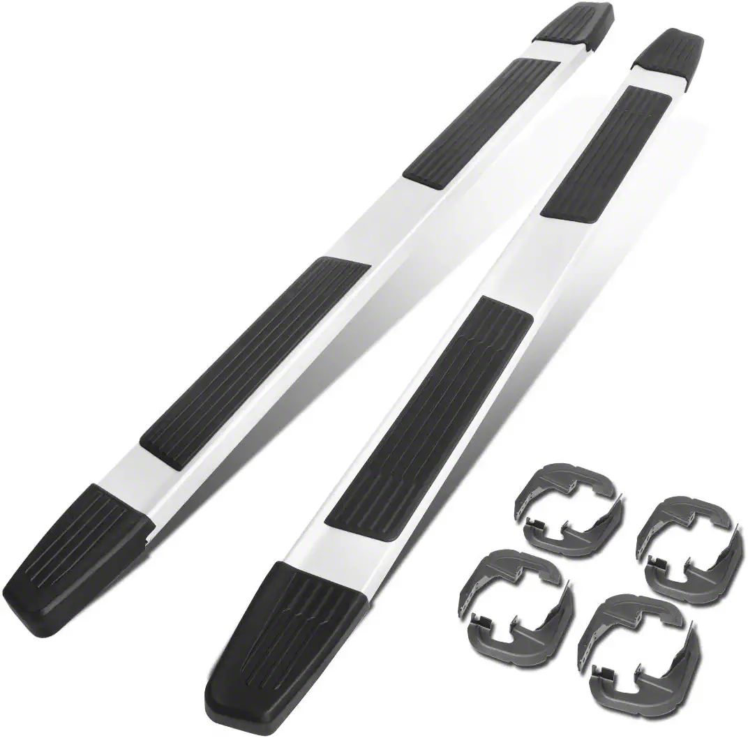 Slip-Resistant Pads. They feature ABS slip-resistant step pads and end caps for added safety and ease of use. The steel mounting plates ensure a secure and stable fit, while the no-drill installation style offers a hassle-free setup. Coated in a silver rust-resistant finish, these running boards bring a sleek and rugged aesthetic to your vehicle.