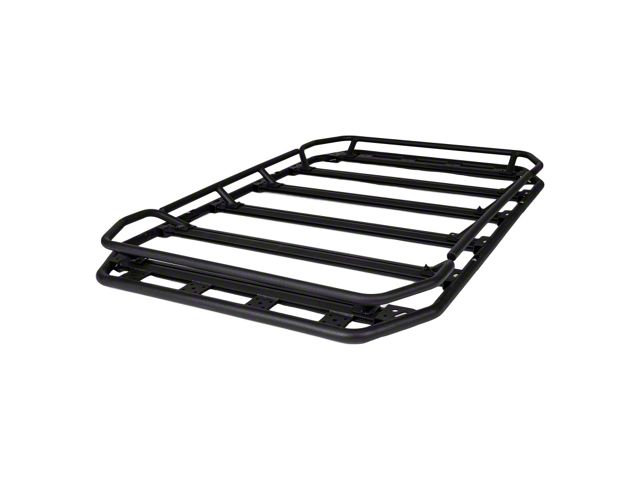 Versatile Roof Rack System. The Go Rhino 60-Inch x 40-Inch Flat Platform Rack with Quad Overland Rail Kit is designed to offer versatile cargo-carrying solutions for overland enthusiasts. This rack system provides ample space and secure mounting for various accessories, enhancing the storage capacity of your vehicle while on the road or off the beaten path.