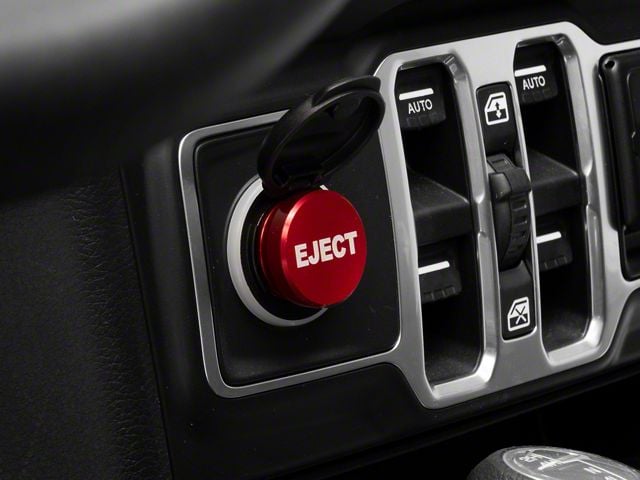 Eject Button Lighter Plug. Replace that old malfunctioning stock cigarette lighter plug with a humorously themed red anodized, lighter plug delete that features the word "Eject" in white text. This Eject Button is a fun way to cover the cigarette lighter power port in your car or truck.