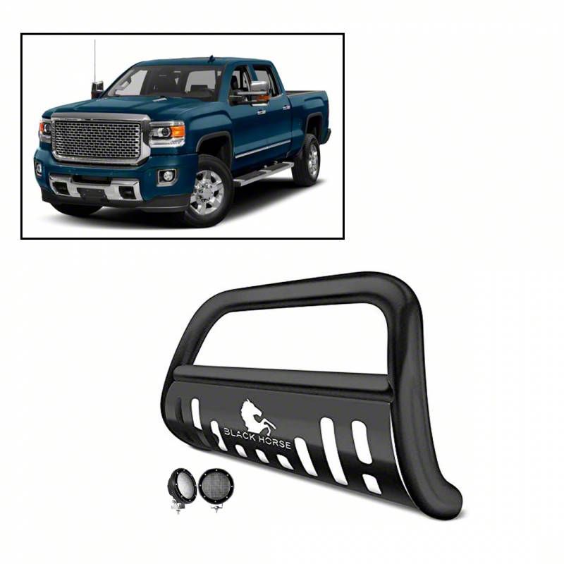 Description. Black Powder Coated Bull Bar Kit (BB004919A-SP-PLFB) by Black Horse Off Road compatible with 2011-2019 Chevrolet Silverado 2500 HD 3500 HD / GMC sierra 2500 HD 3500 HD