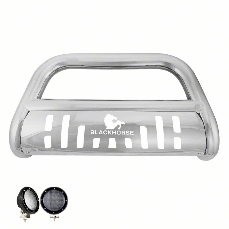 Construction and Appearance. Constructed from high-quality stainless steel, this bull bar is mandrel-bent to ensure a precise fit and is rust-resistant, promising long-lasting durability and performance. What's more? The removable skid plate offers additional undercarriage protection. Aesthetically, it boasts a Stainless Steel finish that adds a sleek, reflective look to the vehicle's front end, enhancing its overall appeal.