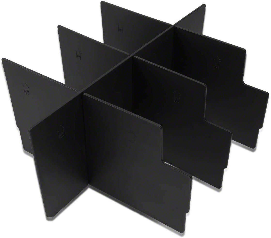 Construction and Appearance. This Center Console Organizer Tray Insert Divider is constructed from ABS plastic and finished in black. It'll blend beautifully with any truck's interior and represents a serious style enhancement.