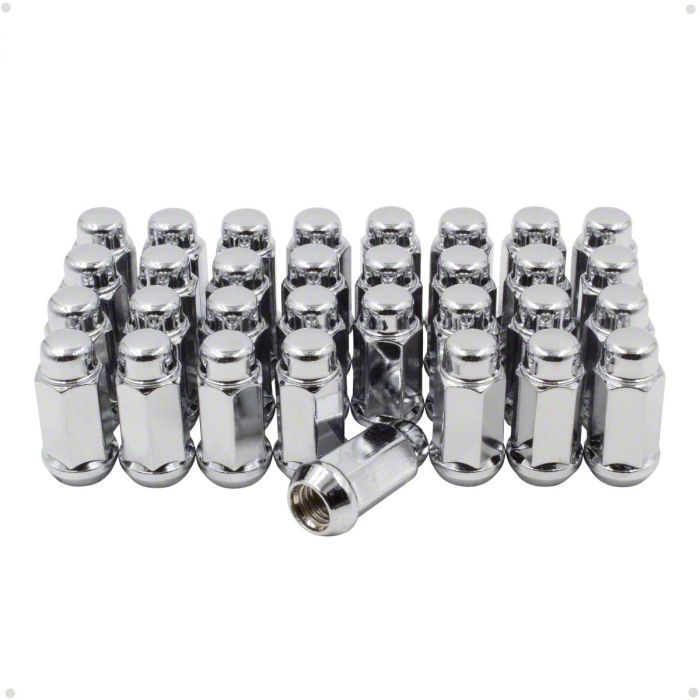 Secure Thread Connection. The M14mm x 1.50 thread size provides a secure and reliable connection to your vehicle's wheels. The Chrome Bulge Acorn Lug Nut Kit is provided with a 1-year warranty, giving you peace of mind and protection against any defects or issues.