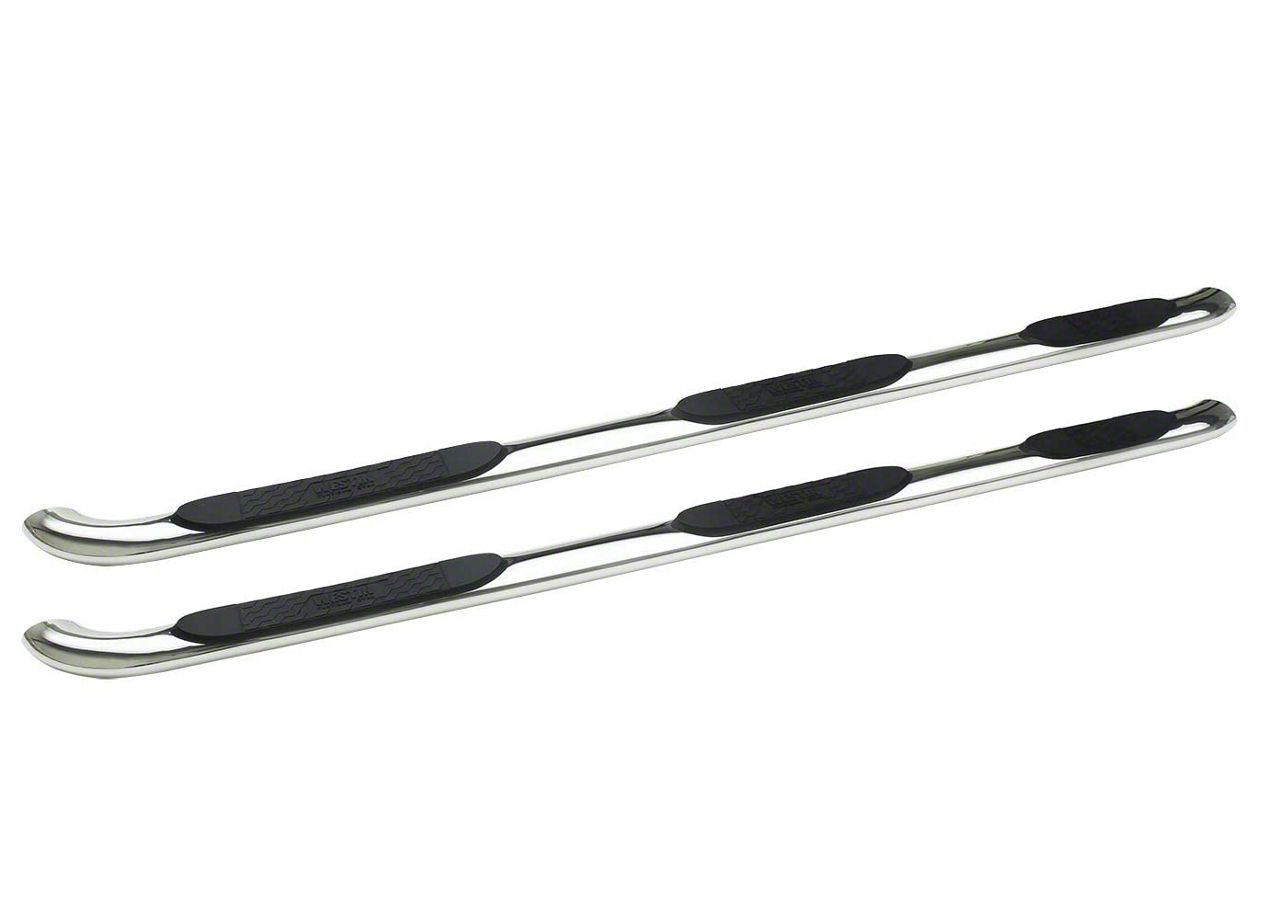 Rugged Construction. These Platinum Side Step Bars are manufactured from 4-inch diameter oval stainless steel tubing for superior strength. These Side Step Bars are then completed in a brightly polished finish for classic good looks and long lasting corrosion resistance. As part of the final assembly a set of rugged non-slip step pads are installed.