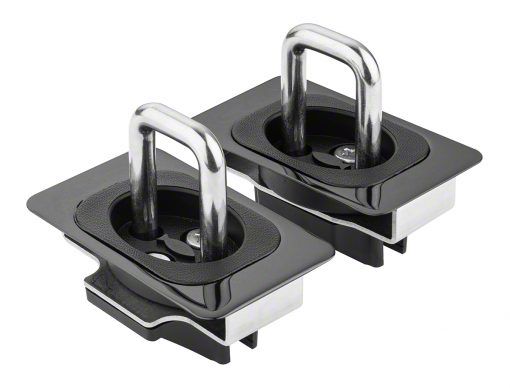 Heavy-Duty Construction. These tie-down anchors have stainless steel rings and chassis with black nylon lower body. They are an exact factory match having the same grain and color as the Ford Rail Caps.
