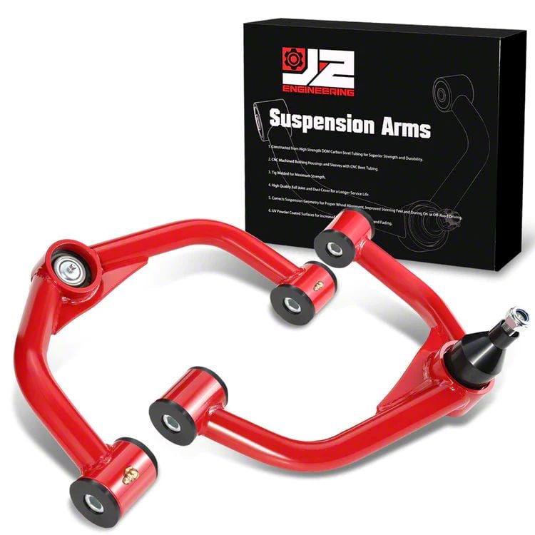 Construction and Appearance. Constructed from carbon steel DOM tubing with polyurethane bushings, these control arms are both strong and durable. The red powder-coat finish not only adds a striking appearance but also offers corrosion resistance. Integrated greaseable Zerk fitting ball joints and bushings ensure longevity and ease of maintenance.