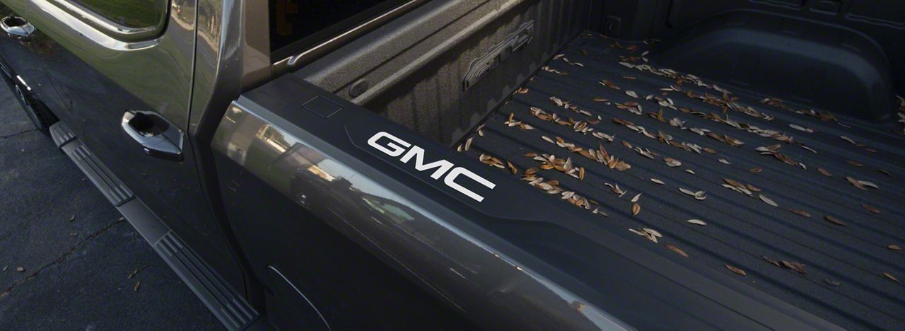 Style and Loyalty. Proudly display your GMC loyalty with some stylish GMC Bed Rail Letter Inserts; Gloss White. Officially licensed by GM, this 6-piece set adds some striking appearance details to your truck's bed rail.