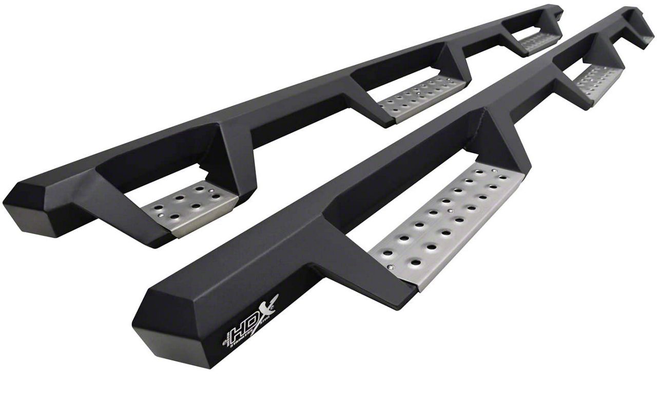 Durable Construction. These HDX Side Step Bars are manufactured from heavy duty steel plate, for superior strength and rigidity. Even if hit by road or trail debris, these Side Step Bars won’t easily bend or deform. These Side Steps are then powder coated in a textured black finish for excellent durability and long lasting corrosion resistance. As part of the final assembly a set of rugged non-slip stainless steel step pads are installed.