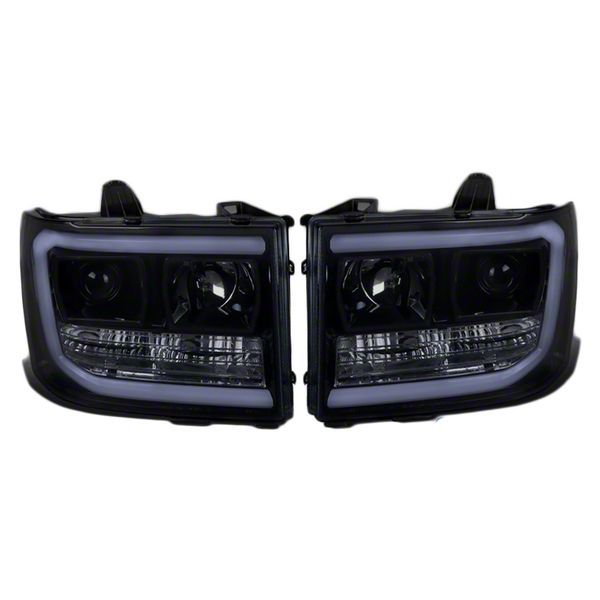 Modern Styling. A pair of smoked gloss black LED DRL Projector Headlights are an excellent way to add an updated modern appearance to your GMC Sierra, all while improving your nighttime visibility. With an impressive DRL Light Bar design, these Headlights will give your Sierra a whole new look.