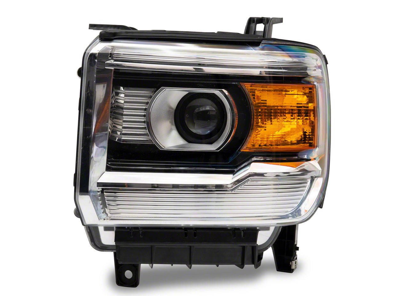 Application. The Projector Headlight; Chrome Housing; Clear Lens; Driver Side fits all 2015-2019 GMC Sierra 2500 HD models with Factory Halogen Headlights.