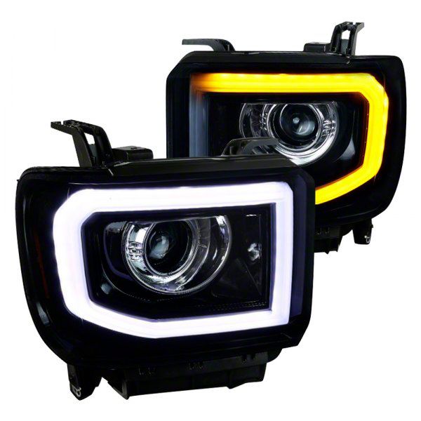 LED Bar Projector Headlights; Gloss Black Housing; Clear Lens (15-19 Sierra 2500 HD w/ Factory Halogen Headlights)Find parts that fit my vehicle