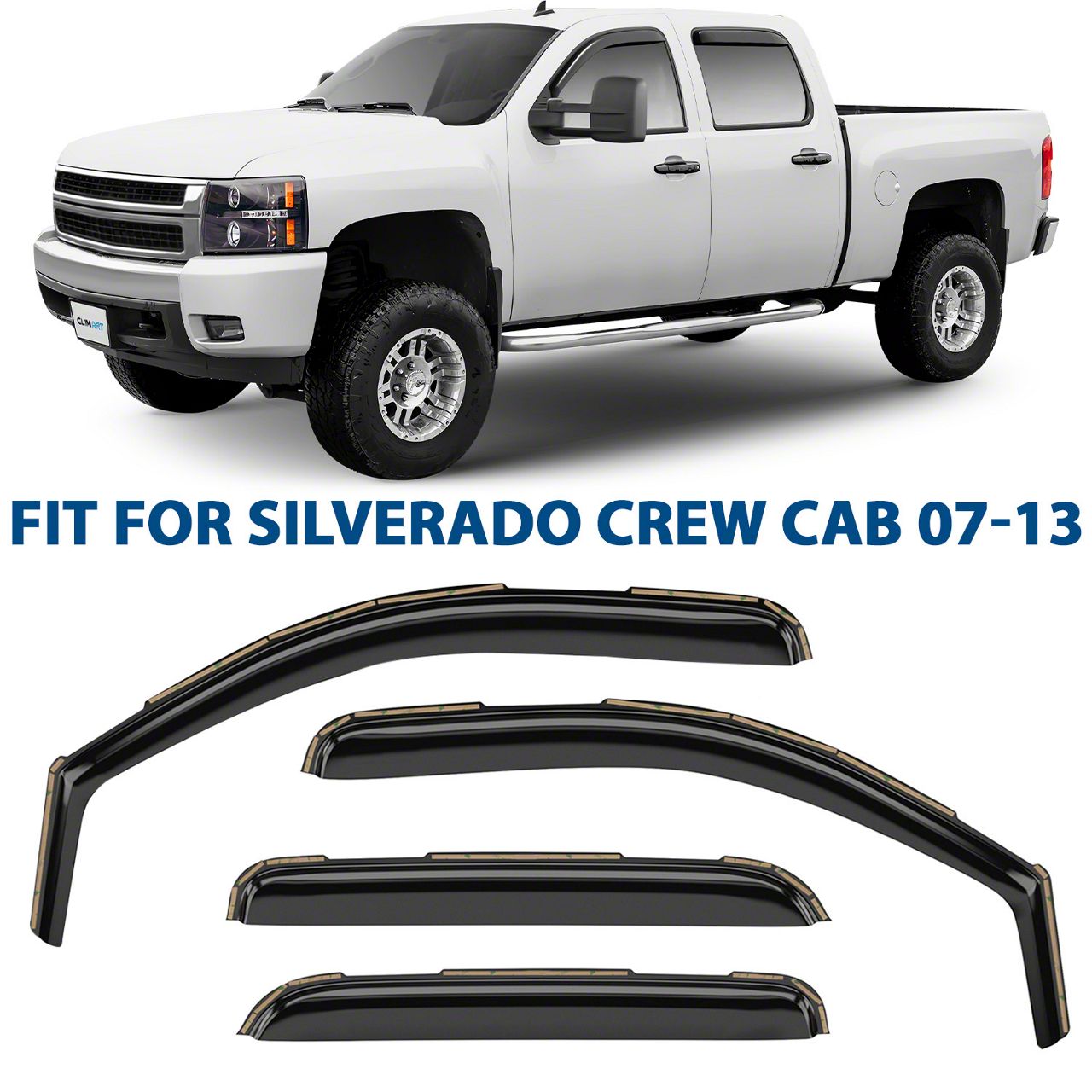Love to keep the windows open but the noisy wind, rain & snow make driving around in your car an awful experience? Presenting CLIM ART car window shields that are specially designed to deflect rain, wind, sunshine, and snow to make car rides a more enjoyable experience for you and your family. CLIM ART CAR WINDOW GUARDSZ: -Keeping windows open while driving on high-speeds is a daunting task as the wind and rains can cause discomfort to the passengers inside; -The special streamlined design of the window shields deflects environmental elements away by altering the vehicle's aerodynamical wind flow pattern; -Allows fresh air to circulate into the car preventing the need for air conditioning and thereby saving fuel; in-channel mounting; -Comes in a dark color for added sun protection while also adding to the appearance of your precious car; -Window rain guards are car wash friendly; -Package includes 2 front deflectors, 2 rear deflectors installation instruction, mounting kit and degrease wipes. Compatible with - Chevrolet (Chevy) Silverado 1500 2007-2013 Crew Cab; - Chevrolet (Chevy) Silverado 2500 2010-2014 Crew Cab; - Chevrolet (Chevy) Silverado 2500HD, 3500HD 2007-2014 Crew Cab; - Chevrolet (Chevy) Avalanche 2007-2013; - Chevrolet (Chevy) Suburban 1500 2007-2014; - Chevrolet (Chevy) Suburban 2500 2007-2013; - for GMC Sierra 1500 2007-2013 Crew Cab; - for GMC Sierra 2500HD, 3500HD 2007-2014 Crew Cab; 2007-2013 for GMC Yukon XL 2500; 2007-2014 for GMC Yukon XL 1500. WE OFFER A 100% SATISFACTION GUARANTEE! Should our product fail to please you, we will either replace the product or offer you a full refund, with no questions asked. So, why think twice? ORDER NOW & Get our Window Rain Guards Right Away!