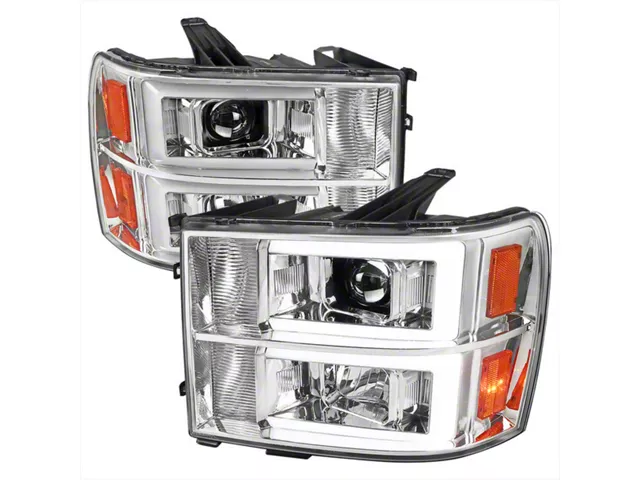 Application. The LED C-Bar Projector Headlights; Chrome Housing; Clear Lens fits 2007-2014 Sierra 2500 HD models.