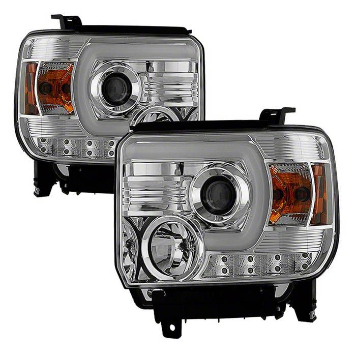 Light Bar DRL Projector Headlights; Chrome Housing; Clear Lens (2015 Sierra 2500 HD w/ Factory Halogen Non-LED DRL Headlights)Find parts that fit my vehicle