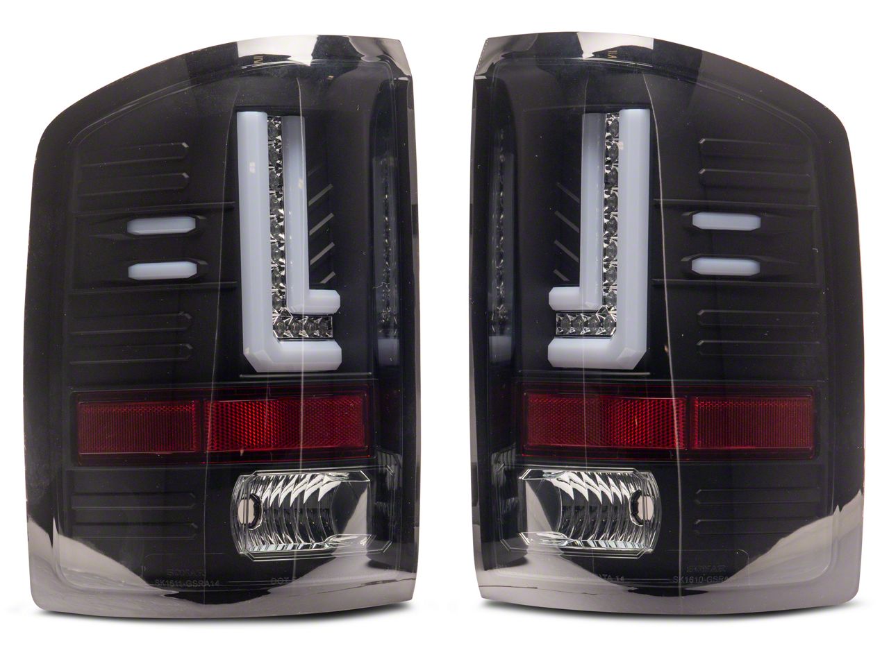 Application. The Light Bar LED Tail Lights; Black Housing; Smoked Lens fit 2016-2019 Sierra 2500 HD SRW models with Factory LED Tail Lights.